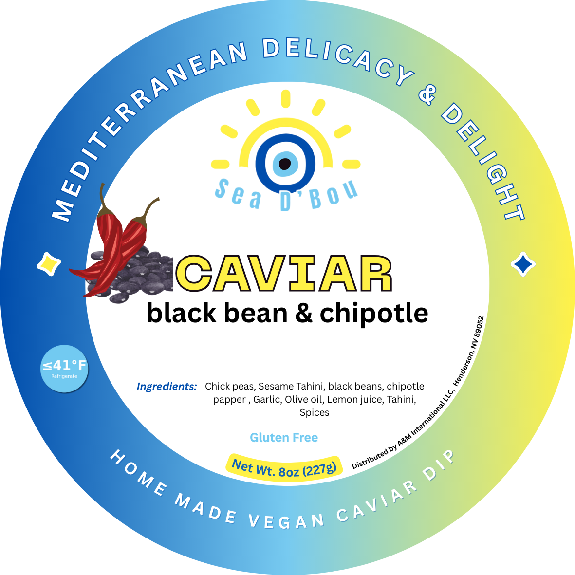 This Black Bean & Chipotle Vegan Caviar is a rich, textured spread crafted from chickpeas and black beans, blended with sesame tahini, olive oil, and smoky chipotle pepper.